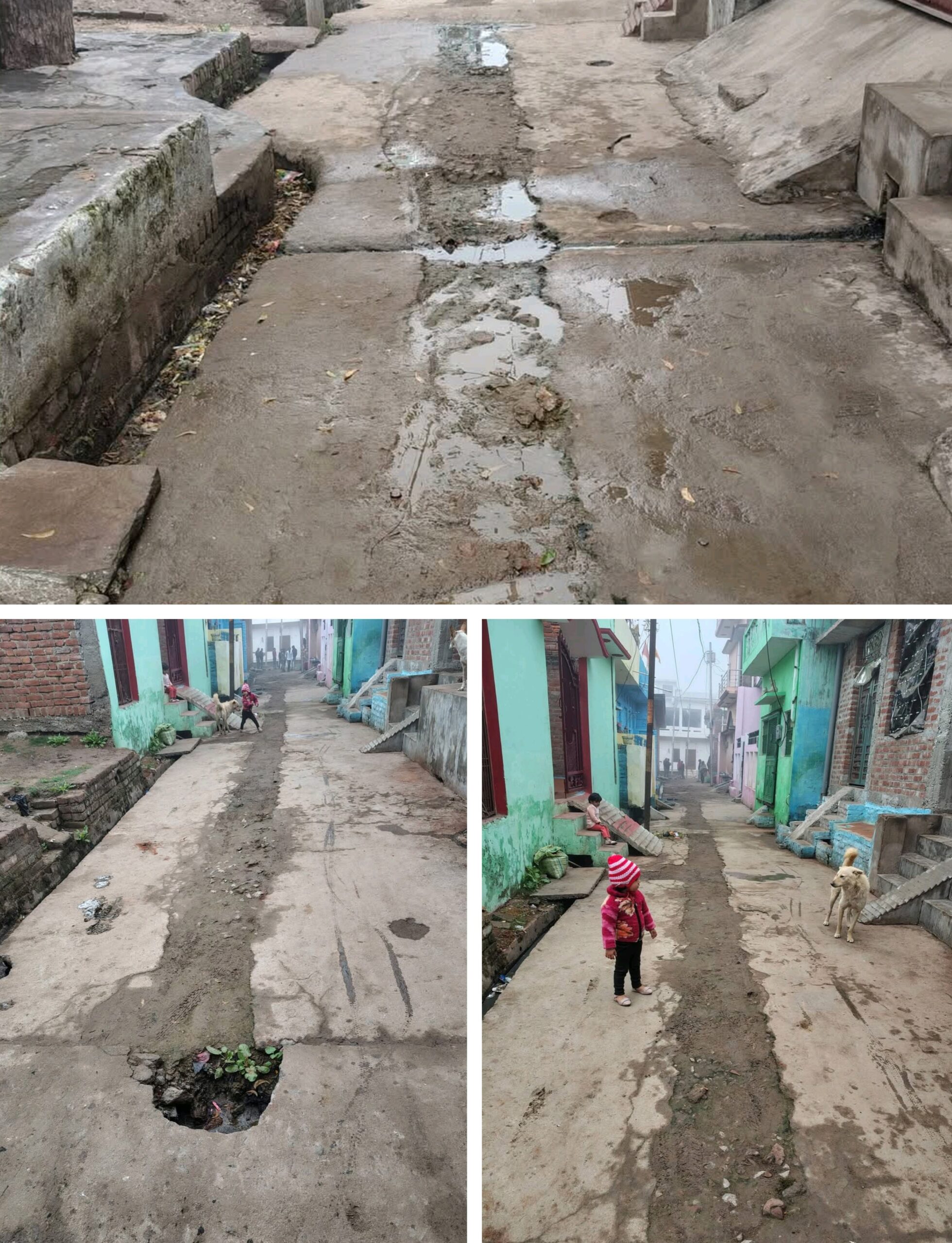बीच सड़क गढ्ढे और गली में भरा पानी,,परेशानी में रहने को मजबूर हैं जालौन में इस मुहल्ले के लोग,,अधिकारियों से लगाई गुहार