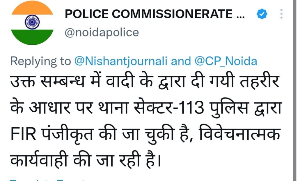 इस प्रकरण के सम्बंध में पुलिस का कहना है कि वादी के द्वारा दी गई तहरीर के आधार पर सेक्टर 113 पुलिस द्वारा मामला पंजीकृत कर विवेचनात्मक कार्यवाही की जा रही है।