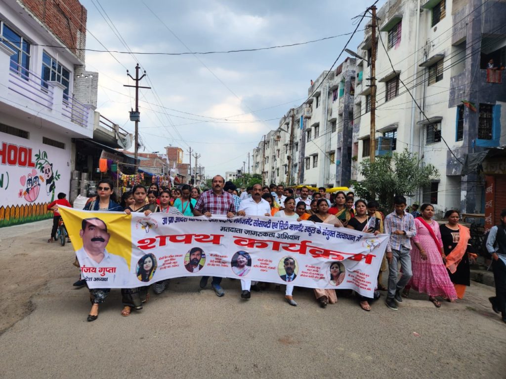 Lucknow news । यूपी में होने वाले निकाय चुनाव में मतदान प्रतिशत बढ़ाने के लिए व्यापार मंडल ने ये अपील की है। उत्तर प्रदेश आदर्श व्यापार मंडल, सिटी कान्वेंट स्कूल एवं एडोप्ट मैनेजमेंट सोसायटी के संयुक्त तत्वाधान में उत्तर प्रदेश आदर्श व्यापार मंडल के प्रदेश अध्यक्ष संजय गुप्ता के नेतृत्व में बुधवार को पारा क्षेत्र में “मतदाता जागरूकता पैदल मार्च “निकालकर व्यापारियों, अभिभावकों एवं जनता को अनिवार्य मतदान के लिए जागरूक किया