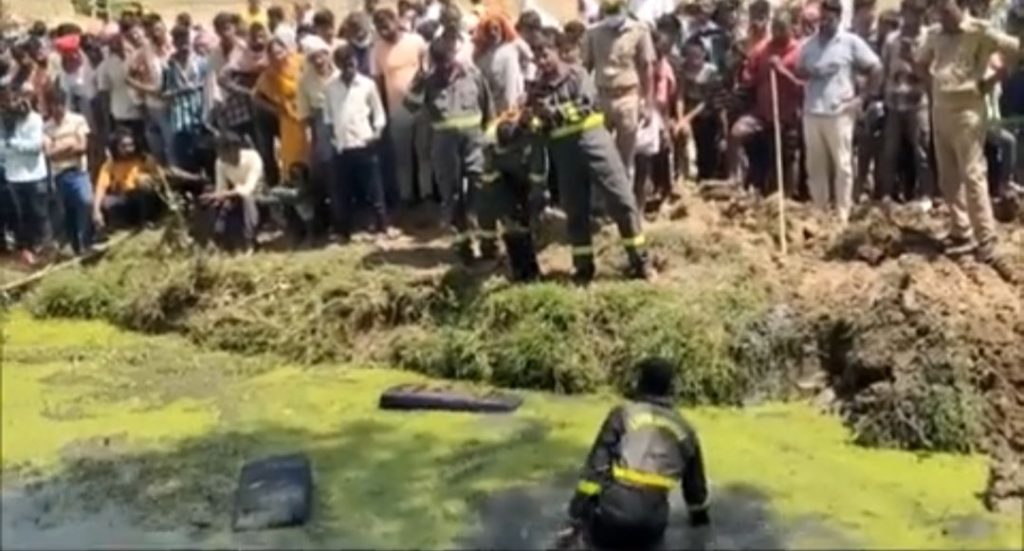 बच्ची को बचाने के चक्कर में गड्ढे में गिरी बस,,कई घायल,,