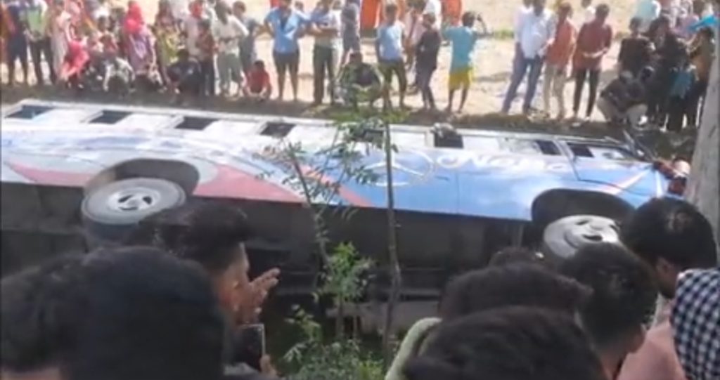 बच्ची को बचाने के चक्कर में गड्ढे में गिरी बस,,कई घायल,,