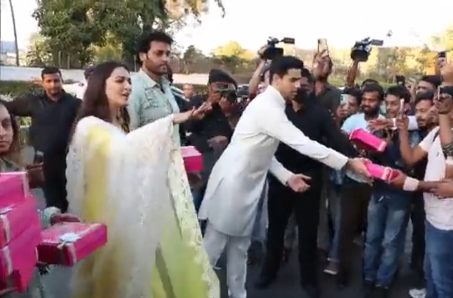 बीती 7 फरवरी को शादी के बंधन में बंधे बॉलीवुड एक्टर सिद्धार्थ और कियारा आडवाणी ने आज मुंबई में पत्रकारों और अन्य अपने फैन्स की मिठाई बांटी।