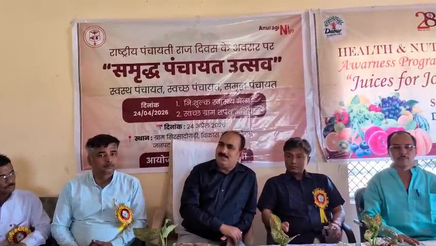 Jalaun news today । जालौन जनपद में माधौगढ़ विकास खंड के ग्राम सिरसा दोगढ़ी में राष्ट्रीय पंचायती राज दिवस के अवसर पर अनुरागिनी संस्था की ओर से “समृद्ध पंचायत उत्सव” का आयोजन किया गया। इस दौरान स्वच्छ ग्राम शपथ अभियान की शुरुआत के साथ निःशुल्क स्वास्थ्य शिविर भी लगाया गया।
