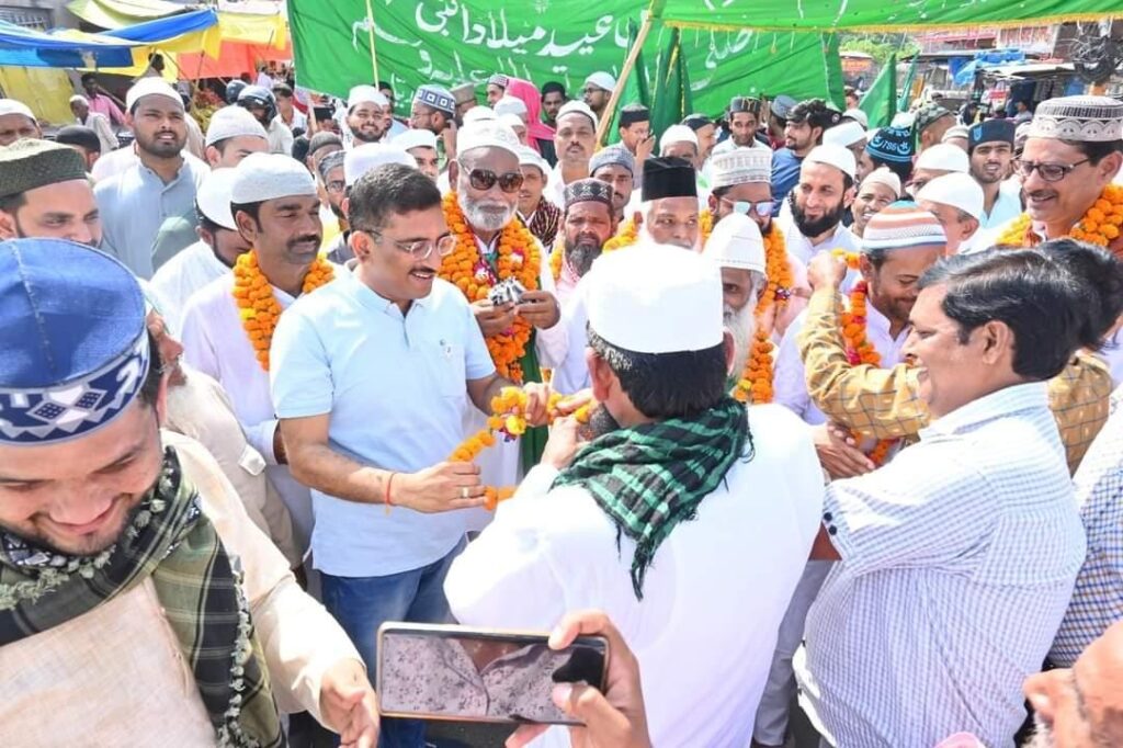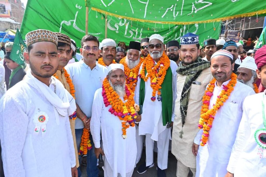 Auraiya news today । उत्तर प्रदेश के औरैया जनपद में गुरुवार को पैगम्बर हजरत मोहम्मद साहब का जन्मदिन फफूंद,दिबियापुर सहित पूरे जिले में बड़े ही धूमधाम व शानो शौकत के साथ मनाया गया। सुबह नगर की ख़ानक़ाह आस्ताना आलिया समदिया से एक अज़ीमुश्शान जुलूस-ए- मुहम्मदी निकला जिसमे हजारों की तादाद में मुस्लिम भाई शामिल हुए,वहीं शाम को लोगों ने मस्जिदों, घरों और दुकानों में चिरागा (रौशनी )कर मुहम्मद साहब के जन्मदिन की खुशियां मनायीं। गुरुवार को इस्लाम धर्म के पैग़म्बर मुहम्मद सल्लल्लाहु अलैह वसल्लम मोहम्मद साहब के जन्मदिवस ईदमिलादुन्नबी पर्व को बहुत ही धूमधाम से मनाया गया। सुबह नगर की ख़ानक़ाह आस्ताना आलिया समदिया से सज्जादा नशीन हजरत सैय्यद अख्तर मियां चिश्ती की सरपरस्ती में जुलूस-ए- मुहम्मदी बड़े ही शानो शौकत आदबो एहतराम तथा शांति पूर्वक निकाला गया जो कस्बे के मोहल्ला भराव मोतीपुर,जुबैरी,केसरवानी,मेवातियांन,गोविंदगंज होता हुआ तिराह चमनगंज पहुंचा जहां सपा दिबियापुर विधायक प्रदीप यादव ने जुलूस का स्वागत किया।