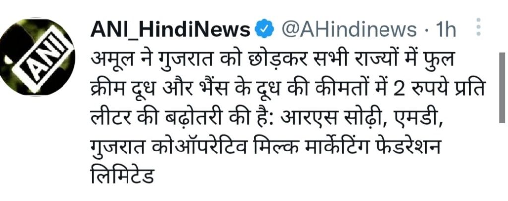 अमूल दूध के दामों में हुई दो रुपये प्रति लीटर की बढ़ोतरी के सम्बंध में गुजरात कॉपरेटिव मिल्क मार्केटिंग फेडरेशन लिमिटेड के एम डी आरएस सोढ़ी ने मीडिया को बताया कि अमूल ने गुजरात को छोड़कर सभी राज्यों में फुल क्रीम दूध और भैंस के दूध की कीमतों में 2 रुपये प्रति लीटर की बढ़ोतरी की है।