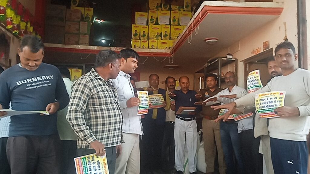 श्रम प्रवर्तन अधिकारी जगदीश वर्मा ने कहा कि वर्ष 2027 तक प्रदेश को बालश्रम से मुक्त किया जाना है। इसी को लेकर जागरूकता शिविरों का आयोजन किया जा रहा है। बाल श्रम समाज की गंभीर समस्या है, जो न केवल बच्चों के भविष्य को अंधकारमय बनाती है, बल्कि सामाजिक विकास में भी बाधक है। उन्होंने कहा कि प्रत्येक दुकानदार, व्यापारी और नागरिक का यह नैतिक कर्तव्य है कि वह बच्चों को स्कूल जाने के लिए प्रेरित करें और किसी भी परिस्थिति में उनसे काम न कराएं। उन्होंने यह भी बताया कि शासन द्वारा बाल श्रमिक पाए जाने पर उन्हें विभिन्न योजनाओं से जोड़ा जाता है ताकि वे शिक्षा और सुरक्षा दोनों का लाभ उठा सकें। इस दौरान एएचटीयू (एंटी ह्यूमन ट्रैफिकिंग यूनिट) प्रभारी राजकुमार ने कहा कि बाल श्रम मानव तस्करी की जड़ों से जुड़ा हुआ अपराध है। उन्होंने बताया कि पुलिस विभाग, श्रम विभाग और बाल कल्याण समिति मिलकर बाल श्रम रोकने के लिए लगातार कारर्वाई कर रहे हैं। किसी भी व्यक्ति को अगर किसी दुकान, होटल, ढाबा या फैक्ट्री में बालक काम करता दिखे तो तुरंत इसकी सूचना श्रम विभाग या पुलिस को देनी चाहिए ताकि बच्चे को बचाकर उसे शिक्षा से जोड़ा जा सके। शिविर में दुकानदारों को पंपलेट बांटे गए और उन्हें यह भी बताया गया कि बाल श्रमिक पाए जाने पर नियोक्ता के खिलाफ सख्त कानूनी कारर्वाई की जाएगी। कायर्क्रम के अंत में सभी उपस्थितों ने बाल श्रम रोकने की शपथ ली। इस मौके पर सहायक लेखाकार रोहित दीक्षित, सहायक इंद्रपाल सिंह, व्यापारी अनुराग बहरे, राजेश गुप्ता, करण कुमार, अजय कुमार, जीवेंद्र गुप्ता, प्रदीप गुप्ता, अंकित गुप्ता, कौशल किशोर गुप्ता, दीपू पुरवार, गोपालजी गुप्ता, निशांत धूसर, सुनील गुप्ता, मनीष धूसर, विजय विश्नोई, कल्लू राठौर, अनिल गुप्ता आदि मौजूद रहे।