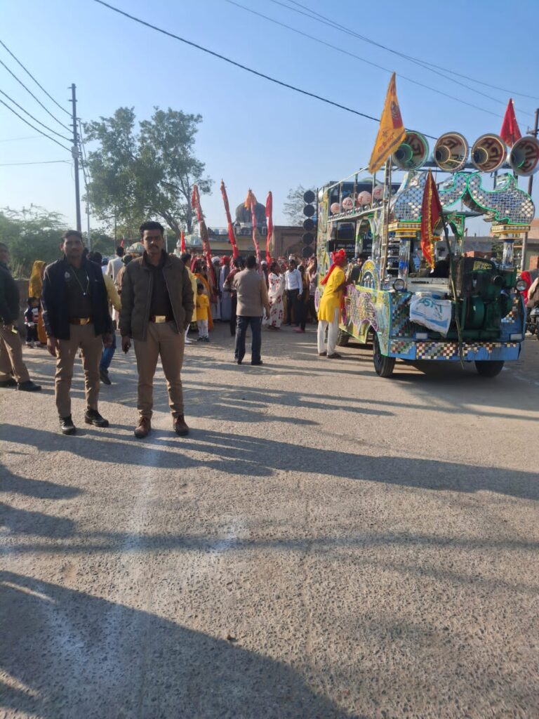 बुधवार को श्रीमद्भागवत कथा ज्ञान यज्ञ कार्यक्रम के प्रथम दिन कथा स्थल अक्षदा ग्रीन सिटी चुर्खी रोड में किन्नर गुरु रेखा बांई द्वारा आयोजित श्रीमद्भागवत कथा स्थल से कलश व शोभायात्रा यात्रा भगवताचार्य अंकित शास्त्री के नेतृत्व में निकाली गयी जो कथा स्थल से शुरू होकर छोटी माता मंदिर होते हुए सब्जी मंडी से नाना महाराज मंदिर से झंडा चौराहा होते हुए कथा स्थल पहुंची। झांकियों व बैंड बाजा पर बज रहे भजनों की ध्वनि पर भक्त जयकारे लगाते व नृत्य करते हुए आगे बढ़ रहे थे तो मातायें बहिनें सर पर कलश लेकर भक्ति के रस में सरावोर होकर आगे बढ़ रही थी। भव्य शोभायात्रा व कलश यात्रा जिस मार्ग से निकली बैंड-बाजे व डी जे में बज रहे भजनों से माहौल भक्तिमय हो गया था। बज रहे भजनों से उस दौरान परीक्षित कमला राजबहादुर अपने सिर पर श्रीमद्भागवत गीता को लेकर आगे आगे चल रहे थे उनके साथ काजू महाराज, भाजपा नेता विजय कुमार, राजा सिंह सेंगर गधेला, वाचस्पति मिश्रा, रेनू बृज किशोर, संजीव, कैलाश, राजाबाबू, रामशंकर, गंगाराम, विशाल कृष्णा, पिंकी, हरकुंवर, सरिता, पूजा, आलोक, कौशल, देवर्षि, राजाबाबू, संतोष समेत बड़ी संख्या में लोग मौजूद रहे।