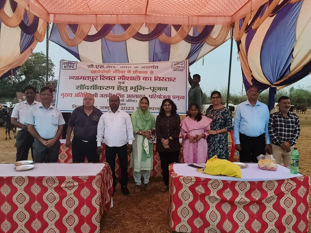 न्यामतपुर, भाग्य नगर औरैया स्थित गौशाले में लगभग 100 गायों को आश्रय दिया गया है। गौशाले के विस्तार एवं सौंदर्यीकरण हेतु एनटीपीसी की नैगम सामाजिक दायित्व सी.एस.आर. नीति के अंतर्गत मंगलवार को एनटीपीसी के सौजन्य से भूमि-पूजन कार्यक्रम का आयोजन हुआ।