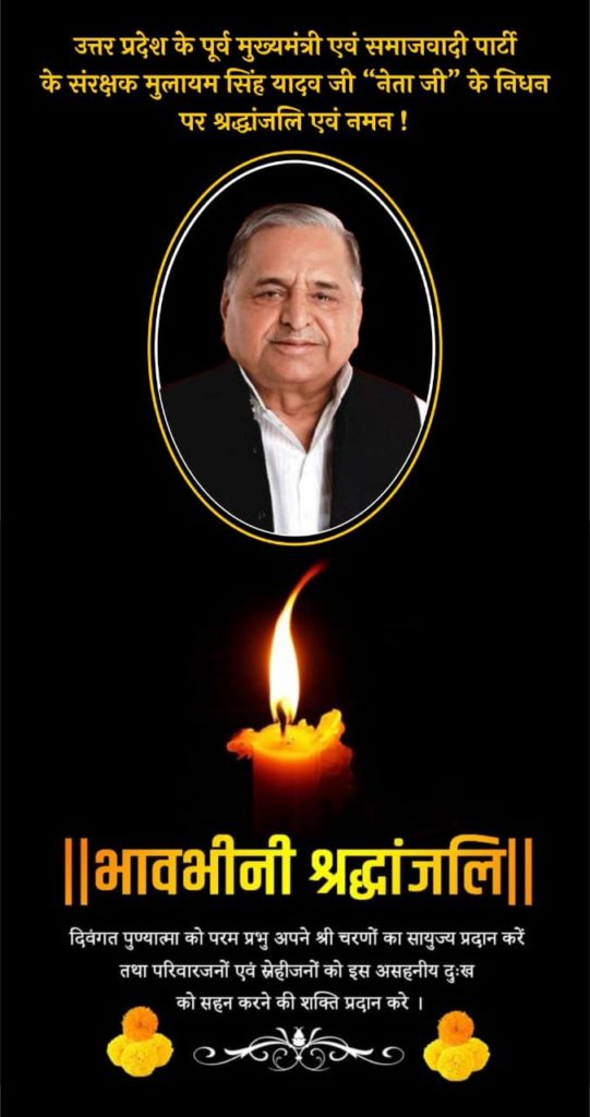 देश की राजनीति की बड़ी दुःखद खबर : नहीं रहे धरतीपुत्र मुलायम सिंह यादव,, आज सुबह हुआ निधन,, दौड़ी शोक की लहर