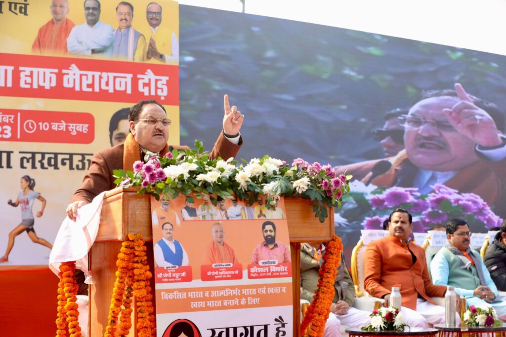 Lucknow news today : भारतीय जनता पार्टी के राष्ट्रीय अध्यक्ष जेपी नड्डा (JP Nadda) ने रविवार को राजधानी लखनऊ के दुबग्गा में आयोजित महिला हॉफ मैराथन के उद्घाटन समारोह को संबोधित किया।