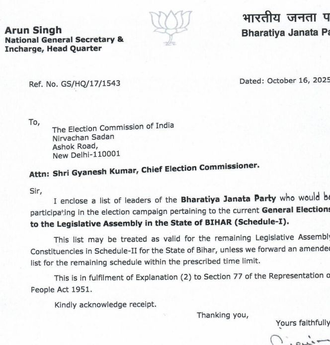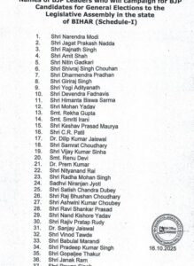 बिहार चुनावों को लेकर भाजपा ने जारी की स्टार प्रचारकों की सूची,,देखिए पूरी लिस्ट