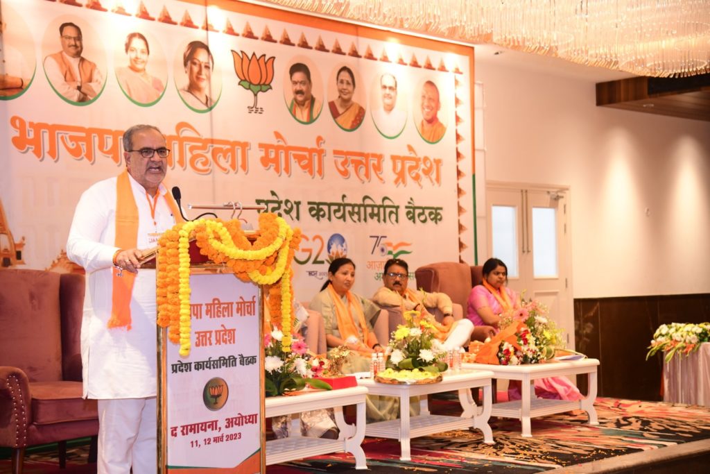 अयोध्या । भारतीय जनता पार्टी के प्रदेश अध्यक्ष भूपेन्द्र सिंह चौधरी ने रविवार को अयोध्या में भाजपा महिला मोर्चा की प्रदेश कार्यसमिति बैठक का उद्घाटन किया। उद्घाटन सत्र को संबोधित करते हुए श्री चौधरी ने कहा कि प्रधानमंत्री नरेंद्र मोदी के नेतृत्व में 2014 में केंद्र में भाजपा की सरकार बनने के बाद से ही महिला सशक्तिकरण की दिशा में निरंतर कार्य हो रहे है। जिसका परिणाम है कि आज नारी शक्ति देश की प्रगति को तीव्र गति से आगे बढ़ाने में महत्वपूर्ण भूमिका निभा रही है।