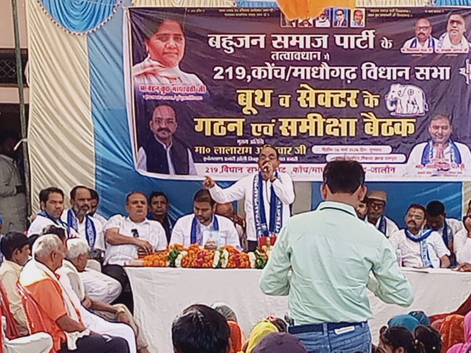 Jalaun news today । बहुजन समाज पार्टी द्वारा संगठन को जमीनी स्तर पर मजबूत करने के अभियान के तहत माधौगढ़ विधानसभा के बीहड़ पट्टी स्थित सेक्टर नरौल के ग्राम कदमपुरा (बूथ संख्या 18) में एक महत्वपूर्ण समीक्षा बैठक आयोजित की गई। इस बैठक में मुख्य अतिथि के रूप में पहुंचे बुंदेलखंड प्रभारी लालाराम अहिरवार ने कार्यकर्ताओं और उमड़ी भारी भीड़ में जोश भरते हुए आगामी चुनाव की रणनीति साझा की।