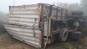 कूलर लेकर आ रहा कंटेनर पलटा,, यह बताई जा रही वजह