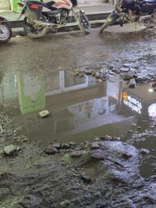 पूर्व विधायक व भाजपा महामंत्री के आवास के सामने मार्ग जर्जर