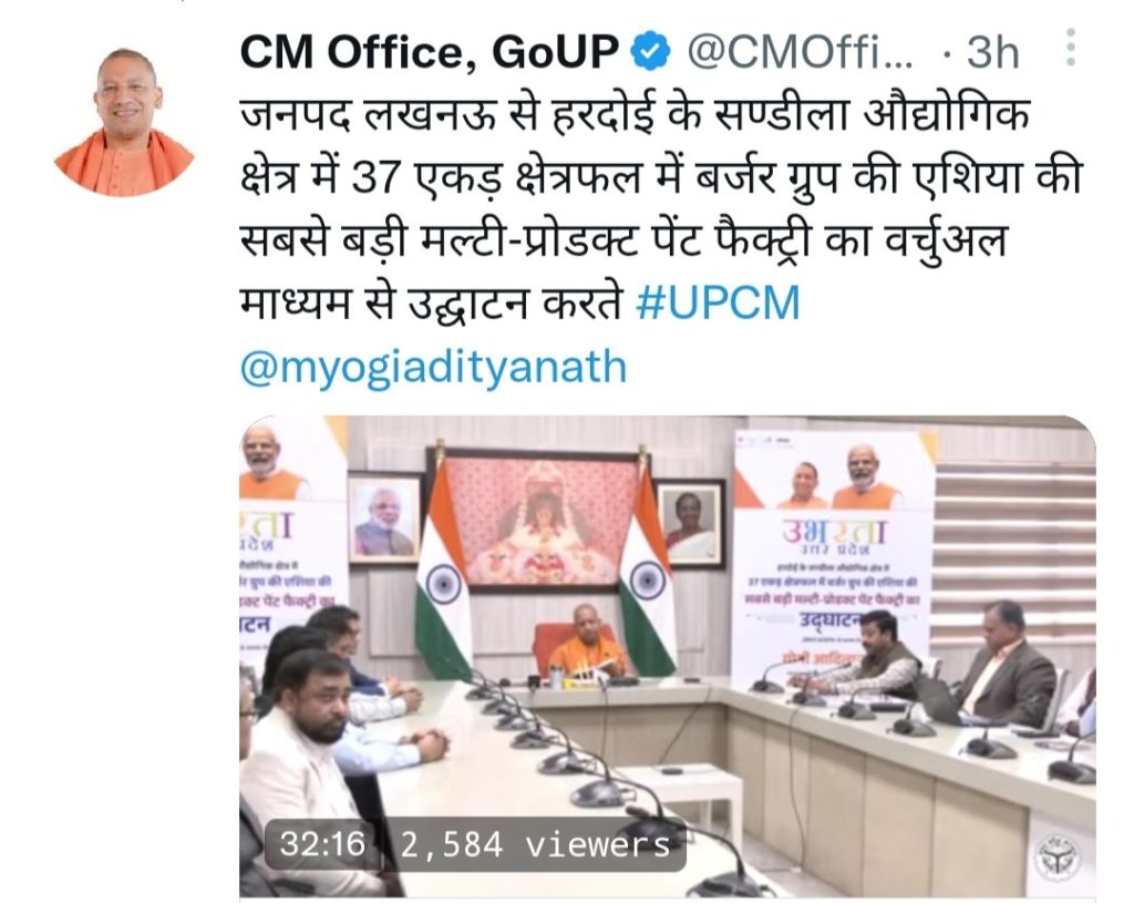 Lucknow । उत्तर प्रदेश के मुख्यमंत्री योगी आदित्यनाथ ने रविवार को हरदोई के संडीला में स्थित औद्योगिक क्षेत्र में बरजर ग्रुप की एक फैक्ट्री का वर्चुअल उद्घाटन किया । इस अवसर पर मुख्यमंत्री योगी आदित्यनाथ ने अपने संबोधन में कहा कि आज जनपद हरदोई के संडीला औद्योगिक क्षेत्र में एक नए औद्योगिक निवेश का शुभारंभ होने जा रहा है और होली के अवसर पर 1हजार करोड़ से अधिक के निवेश का धरातल पर उतरना उत्तर प्रदेश में एक नई औद्योगिक क्रांति को प्रदर्शित कर रहा है।