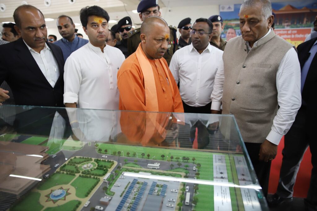 UP news today । उत्तर प्रदेश के मुख्यमंत्री योगी आदित्यनाथ ने शनिवार को भगवान श्रीराम की नगरी अयोध्या में निर्माणाधीन मर्यादा पुरुषोत्तम श्रीराम अंतरराष्ट्रीय एयरपोर्ट का निरीक्षण किया। इस अवसर पर उनके साथ केंद्रीय नागरिक उड्डयन मंत्री ज्योतिरादित्य सिंधिया और केंद्रीय राज्यमंत्री डॉ वीके सिंह भी मौजूद रहे। इस दौरान मुख्यमंत्री और केंद्रीय मंत्रियों ने एयरपोर्ट के निर्माण से जुड़े प्रेजेंटेशन को भी देखा और अधिकारियों के साथ समीक्षा बैठक की। इसके उपरांत मुख्यमंत्री ने मीडिया को बताया कि अयोध्या में बन रहे इंटरनेशनल एयरपोर्ट के प्रथम चरण का निर्माण कार्य 15 दिसंबर तक पूरा हो जाएगा।