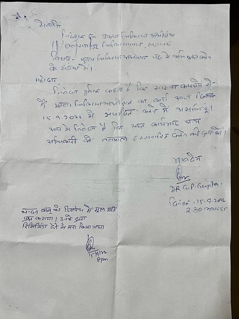 लखनऊ के बलरामपुर अस्पताल के सीएमएस ने डीजी हेल्थ को भेजा अपना इस्तीफा,, ये बताई बजह