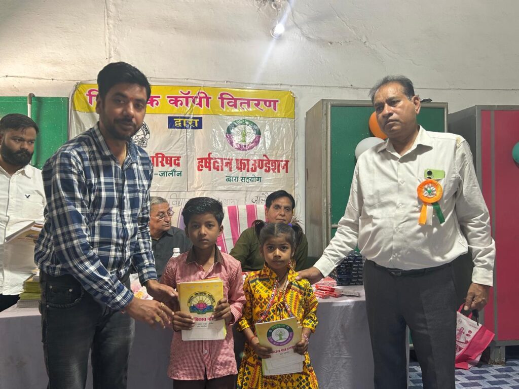 Jalaun news today ।जालौन में भारत विकास परिषद छत्रसाल शाखा के पदाधिकारियों ने कम्पोजिट विद्यालय तोपखाना में बच्चों को माला पहनाकर सम्मानित किया और उन्हें निशुलक कॉपियां व पेंसिल वितरित की। कॉपी व पेंसिल पाकर बच्चों के चेहरे खिल उठे।