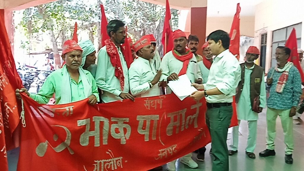 भाकपा माले नगर प्रभारी मुकेश वर्मा के नेतृत्व में पार्टी कार्यकर्ता आशाराम, कांशीराम, रमेश चंद्र, फूल सिहं, शिवबालक, राजीव कुशवाहा, रायसिंह, मुकेश मौर्य ने बुधवार को राज्यपाल को संबोधित छह सूत्रीय ज्ञापन एसडीएम हेमंत पटेल को सौंपकर राज्यपाल से मांग की है कि ओलावृष्टि से हुए नुकसान की भरपाई के लिए किसानों को उचित मुआवजा दिलाया जाए और किसानों का कर्ज माफ किया जाए, बढ़े हुए बिजली के बिल माफ किए जाएं और प्रीपेड स्मार्ट मीटर लगाना बंद कराया जाए। देवनगर चौराहे से फुटकर सब्जी मंडी तक अतिक्रमण के लगने वाले जाम की समस्या का समाधान, नगर पालिका परिषद द्वारा बढ़ाए गए गृहकर को समाप्त किया जाए। इसके अलावा गैस सिलेंडर की कीमत कम की जाए एवं होमडिलीवरी सुनिश्चित की जाए। मोहल्ला फर्दनवीस में कुछ लोगों द्वारा महिला के साथ मारपीट के मामले में रिपोर्ट दर्ज कराई जाए।