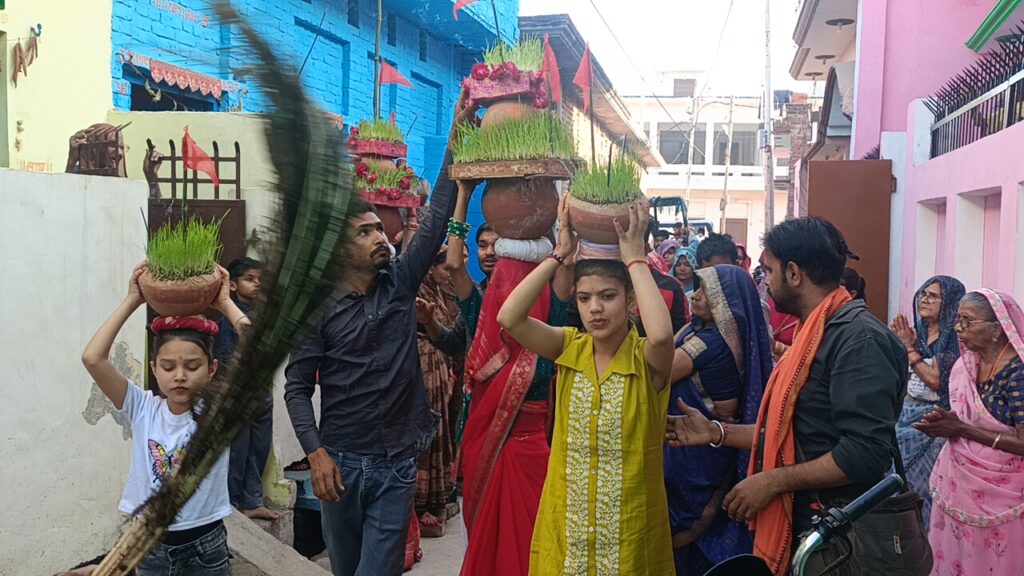 जालौन में नवरात्र के आठवें दिन मंदिरों में उमड़ी भक्तों की भीड़,,चढ़ाए जवारे