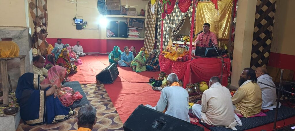 Jalaun news today । व्यक्ति का बचपन कच्चे मिट्टी की तरह होता है उसे जैसा चाहे वैसा पात्र बनाया जा सकता है। पाप के बाद कोई व्यक्ति नरकगामी हो, इसके लिए श्रीमद् भागवत में श्रेष्ठ उपाय प्रायश्चित बताया गया है। यह बात नाना महाराज मंदिर परं आयोजित साप्ताहिक श्रीमद्भागवत कथा के तीसरे दिन कथा व्यास पंडित प्रदीप तिवारी ने कही।