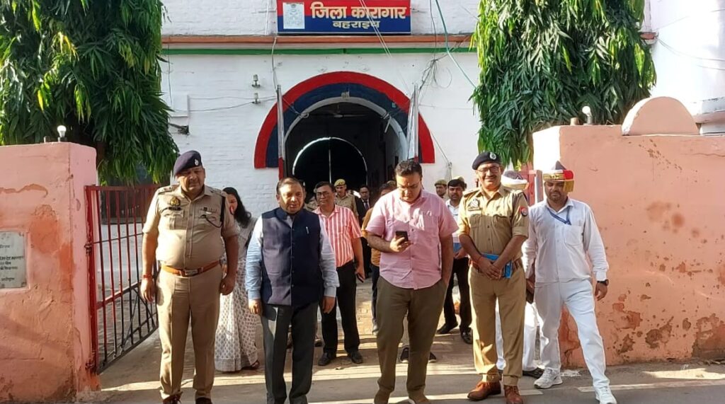 Bahraich news today। बहराइच जनपद न्यायाधीश सतेन्द्र कुमार ने जिलाधिकारी अक्षय त्रिपाठी व पुलिस अधीक्षक रामनयन सिंह, अपर जिला जज/सचिव जिला विधिक सेवा प्राधिकरण बहराइच विराट शिरोमणि, मुख्य न्यायिक दण्डाधिकारी प्रतिभा चौधरी, मुख्य चिकित्साधिकारी डॉ. संजय कुमार व अन्य अधिकारियों के साथ जिला कारागार का निरीक्षण कर कारागार प्रशासन द्वारा बन्दियों को मुहैय्या करायी जा रही सुविधाओं व कारागार की साफ-सफाई इत्यादि व्यवस्थाओं का जायजा लिया। कारागार निरीक्षण के दौरान उच्चाधिकारियों ने पाकशाला, चिकित्सालय सहित विभिन्न बैरकों का भी निरीक्षण किया। महिला बैरक के निरीक्षण के दौरान जनपद न्यायाधीश ने डीएम, एसपी, अपर जिला जज, सीजेएम के साथ कारागार में निरूद्ध महिला बन्दियों के साथ रह रहे बच्चों को कपड़ा, खिलौना, बिस्कुट व चॉकलेट इत्यादि का वितरण भी किया। पाकशाला के निरीक्षण के दौरान साफ-सफाई, भोजन की गुणवत्ता तथा अन्य व्यवस्थाएं संतोषजनक पायी गईं। जिला कारागार के निरीक्षण के दौरान जेल अधीक्षक राजीव कुमार सिंह, जेलर अजय कुमार झा, डिप्टी जेलर अंकित कुमार व माधुरी तिवारी, डॉ अनिल कुमार वर्मा व अन्य संबंधित मौजूद रहें।