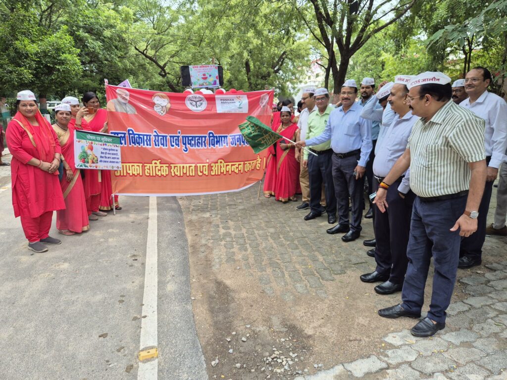 Orai / Jalaun news today । यूपी के जालौन जनपद में बाल विकास सेवा एवं पुष्टाहार विभाग जनपद द्वारा सम्भव अभियान 2025 के अन्तर्गत कलेक्ट्रेट परिसर से जिलाधिकारी राजेश कुमार पाण्डेय व मुख्य विकास अधिकारी कुमुदेन्द्र कलाकर द्वारा हरी झण्डी दिखाकर विशाल “सम्भव अभियान जागरुकता रैली’ रवाना किया गया। जनपद की आंगनबाड़ी कार्यकत्रियों एवं सहायिकाओं द्वारा कुपोषण मुक्त जनपद जालौन तथा पोषण जागरुकता सम्बन्धी नारे लगाते हुये पोषण रैली अम्बेडकर चौराहा उरई तक निकाली गयी।