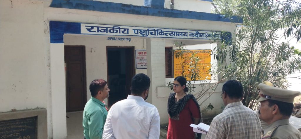 कदौरा के पशु चिकित्सालय में औचक निरीक्षण करने पहुंची डीएम चांदनी सिंह ने वहां की व्यवस्थाओं का जायजा लिया और सम्बंधित पशु चिकित्सा अधिकारी को विभागीय योजनाओं को पशुपालक उपलब्ध कराने के लिए आवश्यक दिशा निर्देश भी जारी किए।