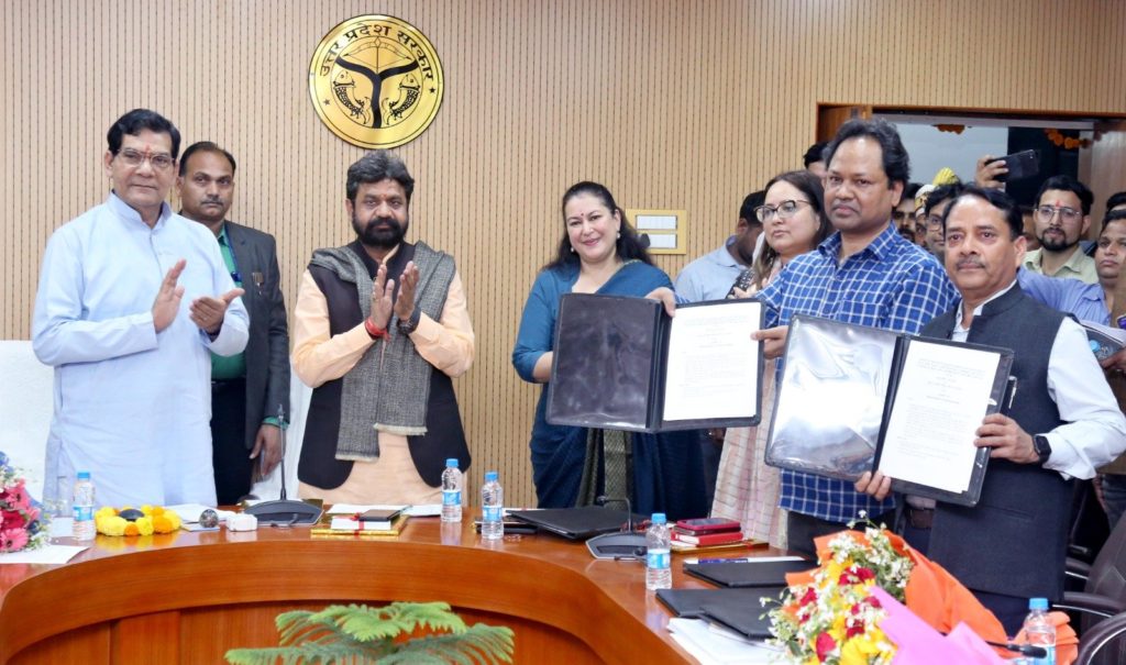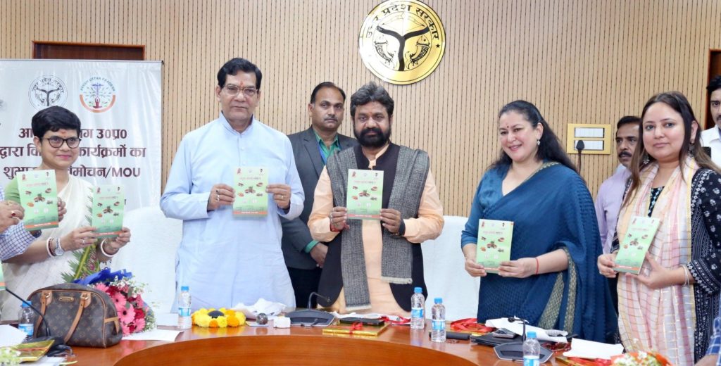 लखनऊ । उत्तर प्रदेश के नगर विकास एवं ऊर्जा मंत्री ए के शर्मा एवं आयुष, खाद्य सुरक्षा व औषधि प्रशासन राज्यमंत्री (स्वतंत्र प्रभार) डा0 दयाशंकर मिश्र ‘दयालु’ की उपस्थिति में सोमवार को नगर विकास और आयुष विभाग के बीच तथा आवास एवं शहरी नियोजन और आयुष विभाग के बीच आज जल निगम के ट्रांजिट हास्टल ‘संगम’ में समझौता ज्ञापन (एमओयू) हस्ताक्षरित हुआ। समझौता ज्ञापन में स्थानीय निकाय निदेशक नेहा शर्मा तथा आयुष के मिशन डायरेक्टर महेन्द्र वर्मा और विशेष सचिव आवास एवं शहरी नियोजन राकेश कुमार मिश्र तथा आयुष के मिशन डायरेक्टर महेन्द्र वर्मा ने हस्ताक्षर किये और एक-दूसरे को इसका प्रस्ताव हस्तगत किया।