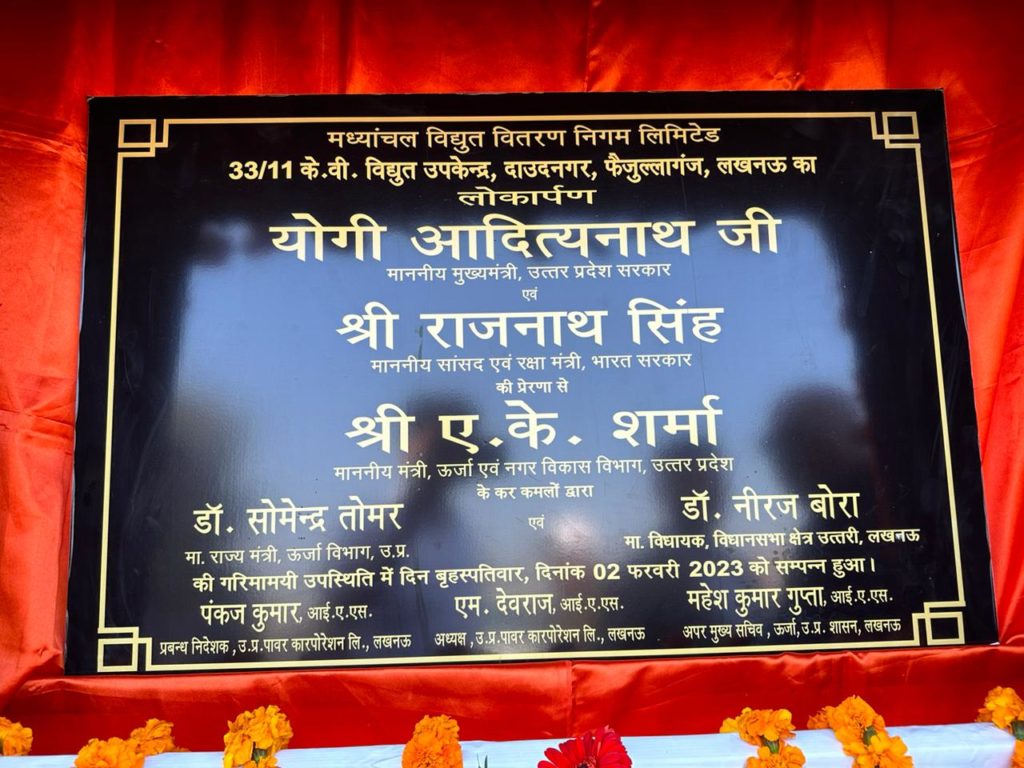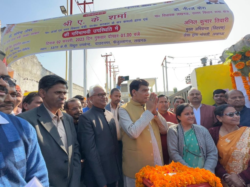 लखनऊ : उत्तर प्रदेश के नगर विकास एवं ऊर्जा मंत्री ए के शर्मा ने आज लखनऊ की विद्युत आपूर्ति में सुधार हेतु 987.78 लाख रूपए की लागत से नया निर्मित 2×5 एमवीए क्षमता के 33/11 केवी विद्युत उपकेन्द्र दाउदनगर, फैजुल्लागंज का लोकार्पण बटन दबाकर किया। उन्होंने लोकार्पण शंख ध्वनि और वैदिक मंत्रोच्चारण के बीच किया।