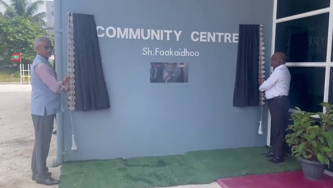 भारत के विदेश मंत्री डॉक्टर एस जयशंकर ने गुरुवार को मालदीव के विदेश मंत्री अब्दुल्ला शाहिद के साथ फोकेधू में इंडिया फंडेड कम्युनिटी सेंटर का उद्घाटन किया। इस अवसर पर भारत के विदेश मंत्री डॉक्टर एस जयशंकर ने कहा कि यह सामुदायिक केंद्र भारत मालदीव विकास साझेदारी के तहत पूरे मालदीव में बनाए जा रहे हैं उन्होंने कहा कि गुणवत्तापूर्ण सामाजिक बुनियादी ढांचे एक उत्कृष्ट उदाहरण है विदेश मंत्री श्री जयशंकर ने कहा कि भारत अनुदान सहायता के माध्यम से 16 एटोल और 36 द्वीपो में फैली ऐसी 45 परियोजनाओं का समर्थन कर रहा है । विदेश मंत्री ने कहा कि इनमें से 23 परियोजनाएं पहले ही पूरी हो चुकी है गाफ ढालू में एक खेल परिसर के विकास के लिए एक नई परियोजना कल शुरू हो गयी है।