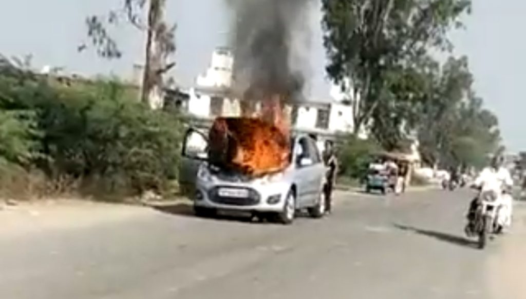 बताया गया है कि एक परिवार अल्टो कार से उरई से राठ की तरफ जा रहा था, तभी इंजन गर्म होने के कारण कार को चलाने वाले ने रोक दी और उसकी बोनट खोलते हुए चेक किया, जैसे ही कार की बोनट खोली, अचानक कार के इंजन ने आग पकड़ ली, जिससे कार में आग लग गई । इसको देखते हुए वहां से निकलने वाले राहगीरों ने तत्काल कार में बैठी महिला और उसके बच्चों को बाहर निकालकर जान बचाई। आग को बुझाने के लिए मिट्टी तथा बालू को डाला मगर आग की लपटें कम नहीं हुई, जिसे देख आसपास के लोग गीला बोरा लेकर इंजन पर डाला, तब कहीं जाकर आग को काबू किया जा सका। इस आग से बड़ी देर तक अफरा-तफरी मची रही। चलती कार में आग लगने का वीडियो वहां मौजूद लोगों ने बनाकर सोशल मीडिया में वायरल कर दिया।
