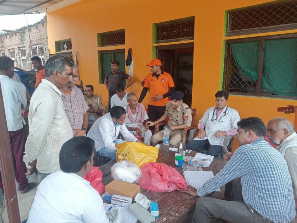 रामपुरा के नदिया पार इलाका को प्रतिवष आने बाली बाढ़ से विभिन्न प्रकार की परेशानियों का सामना करना पड़ता है । आथिर्क क्षति के साथ साथ बाढ़ के पानी के उतरते ही बीमारियों के फैलने का जो सिलसिला प्रारंभ होता है उससे बहुत बड़ा संकट उत्पन्न हो जाता है। आज क्षेत्राधिकारी माधौगढ़ डॉ देवेंद्र कुमार, एसडीआरएफ टीम एवं सामुदायिक स्वास्थ्य केंद्र रामपुरा की चिकित्सकीय टीम के साथ नव प्रसूता मां एवं उसके नवजात शिशु को लेकर मोटरबोट द्वारा निनावली जागीर पहुंचे व गांव के लोगों को सुरक्षित एवं बेफिक्र होने के लिए आश्वस्त करते हुए चिकित्सा शिविर का आयोजन किया। पुलिस क्षेत्राधिकारी डॉक्टर देवेंद्र कुमार ने स्वयं बीमार लोगों का चिकित्सकीय परीक्षण कर उन्हें समुचित उपचार वह बीमारी से बचने हेतु सावधानियां बरतने की सलाह देकर पुलिस अधिकारी होने एवं चिकित्सक (एमबीबीएस) के संयुक्त कतर्व्य का पालन किया। इस अवसर पर आपके साथ थानाध्यक्ष रामपुरा राजीवकुमार वैस भी मौजूद थे।