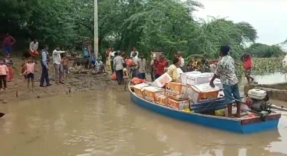 रामपुरा के नदिया पार इलाका को प्रतिवष आने बाली बाढ़ से विभिन्न प्रकार की परेशानियों का सामना करना पड़ता है । आथिर्क क्षति के साथ साथ बाढ़ के पानी के उतरते ही बीमारियों के फैलने का जो सिलसिला प्रारंभ होता है उससे बहुत बड़ा संकट उत्पन्न हो जाता है। आज क्षेत्राधिकारी माधौगढ़ डॉ देवेंद्र कुमार, एसडीआरएफ टीम एवं सामुदायिक स्वास्थ्य केंद्र रामपुरा की चिकित्सकीय टीम के साथ नव प्रसूता मां एवं उसके नवजात शिशु को लेकर मोटरबोट द्वारा निनावली जागीर पहुंचे व गांव के लोगों को सुरक्षित एवं बेफिक्र होने के लिए आश्वस्त करते हुए चिकित्सा शिविर का आयोजन किया। पुलिस क्षेत्राधिकारी डॉक्टर देवेंद्र कुमार ने स्वयं बीमार लोगों का चिकित्सकीय परीक्षण कर उन्हें समुचित उपचार वह बीमारी से बचने हेतु सावधानियां बरतने की सलाह देकर पुलिस अधिकारी होने एवं चिकित्सक (एमबीबीएस) के संयुक्त कतर्व्य का पालन किया। इस अवसर पर आपके साथ थानाध्यक्ष रामपुरा राजीवकुमार वैस भी मौजूद थे।