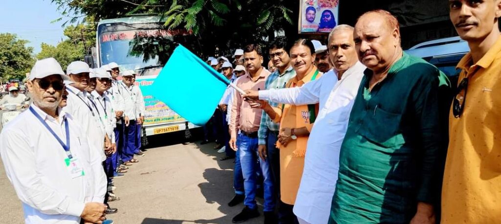 कृषक प्रशिक्षण वाहन को पूर्व कृषि राज्यमंत्री एवं भाजपा जिलाध्यक्ष ने हरी झंडी दिखाकर किया रवाना