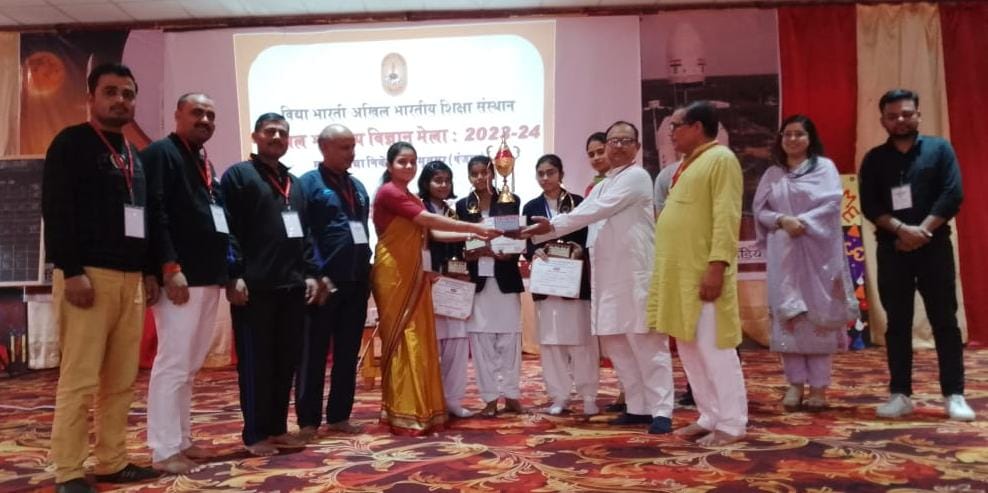 Auraiya news today औरैया जनपद के दिबियापुर में विद्या भारती अखिल भारतीय शिक्षा संस्थान के द्वारा आयोजित 21वां अखिल भारतीय विज्ञान मेला 2023-24 जो विद्या निकेतन सीनियर सेकेंडरी स्कूल अमृतसर पंजाब में 4 से 7 नवंबर तक आयोजन हो रहा है। इसमें अखिल भारतीय विज्ञान प्रश्न मंच प्रश्नोत्तरी प्रतियोगिता में नगर दिबियापुर के सरस्वती विद्या मंदिर इण्टर कॉलेज की छात्राएं नव्या बाजपेई, दिशा चतुर्वेदी एवं प्रियांशी ने देश भर के विद्या भारती से सम्बद्ध विद्यालयों (स्टेट बोर्ड एवम् सीबीएसई बोर्ड) के प्रतिभागियों में किशोर वर्ग विज्ञान प्रश्न मंच में प्रथम स्थान प्राप्त कर विद्यालय, नगर, प्रान्त, क्षेत्र का एवम् प्रदेश का नाम रोशन कर दिया।