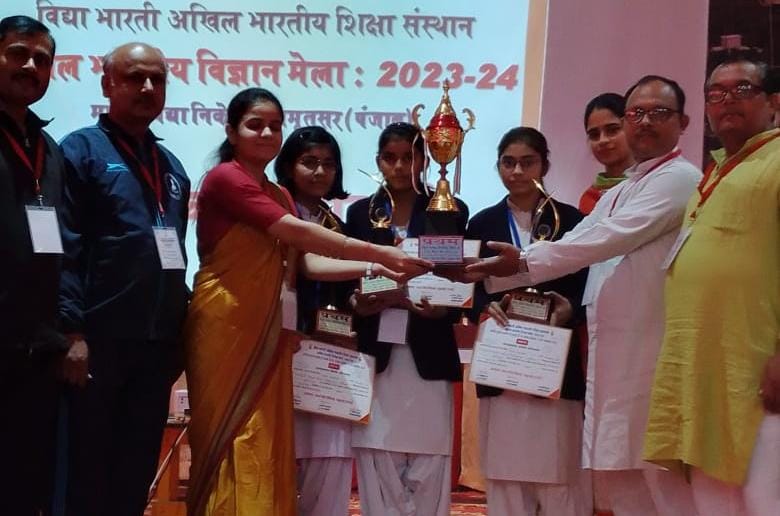 Auraiya news today औरैया जनपद के दिबियापुर में विद्या भारती अखिल भारतीय शिक्षा संस्थान के द्वारा आयोजित 21वां अखिल भारतीय विज्ञान मेला 2023-24 जो विद्या निकेतन सीनियर सेकेंडरी स्कूल अमृतसर पंजाब में 4 से 7 नवंबर तक आयोजन हो रहा है। इसमें अखिल भारतीय विज्ञान प्रश्न मंच प्रश्नोत्तरी प्रतियोगिता में नगर दिबियापुर के सरस्वती विद्या मंदिर इण्टर कॉलेज की छात्राएं नव्या बाजपेई, दिशा चतुर्वेदी एवं प्रियांशी ने देश भर के विद्या भारती से सम्बद्ध विद्यालयों (स्टेट बोर्ड एवम् सीबीएसई बोर्ड) के प्रतिभागियों में किशोर वर्ग विज्ञान प्रश्न मंच में प्रथम स्थान प्राप्त कर विद्यालय, नगर, प्रान्त, क्षेत्र का एवम् प्रदेश का नाम रोशन कर दिया।