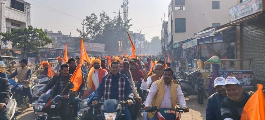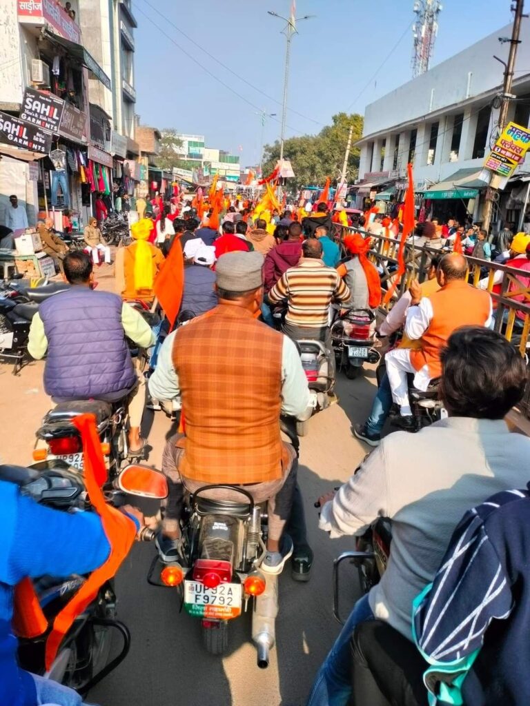 उरई शहर हुआ भगवामय अयोध्या धाम से आए पूजित अक्षत का कार्य लगभग नगर में पूरा हुआ