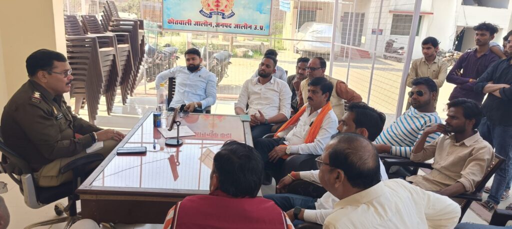 Jalaun news today। जालौन में मंगलवार की रात कोतवाली पुलिस द्वारा श्रीवीर बालाजी हनुमान मंदिर पर चल रहे धार्मिक आयोजनों में प्रयोग हो रहे ध्वनि विस्तारक यंत्रों को उतरवा दिया गया था जिस पर हिंदूवादी संगठनों ने रोष व्यक्त किया था। बुधवार को कोतवाली में पुलिस और धार्मिक संगठन के लोगों के बीच वार्ता के बाद पुलिस ने ध्वनि विस्तारक यंत्रों को वापस मंदिर पहुंचा दिया साथ ही निर्धारित मानक पर ध्वनि विस्तारक यंत्र का प्रयोग करने की बात कही।