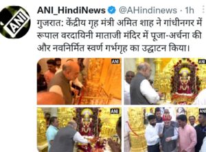बता दे आपको देश के गृह मंत्री अमित शाह आज गुजरात के गांधीनगर पहुंचे जहां पर उन्होंने रूपाल वरदायिनी माता जी मंदिर में पूजा अर्चना की और स्वर्ण गर्भ ग्रह का उद्घाटन भी किया।
