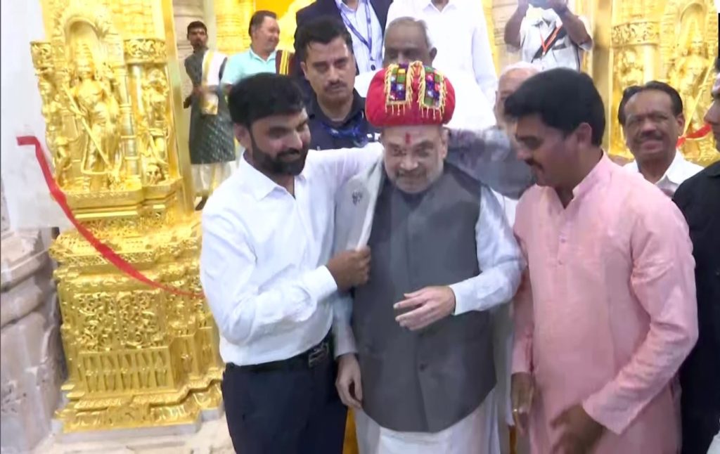 नवरात्रि के दूसरे दिन गृह मंत्री अमित शाह गुजरात के गांधी नगर पहुंचे और वहां पर उन्होंने वरदायिनी माता मंदिर में पूजा अर्चना की और नवनिर्मित स्वर्ण गर्वग्रह का उद्घाटन भी किया।