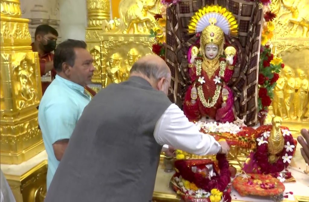 नवरात्रि के दूसरे दिन गृह मंत्री अमित शाह गुजरात के गांधी नगर पहुंचे और वहां पर उन्होंने वरदायिनी माता मंदिर में पूजा अर्चना की और नवनिर्मित स्वर्ण गर्वग्रह का उद्घाटन भी किया।