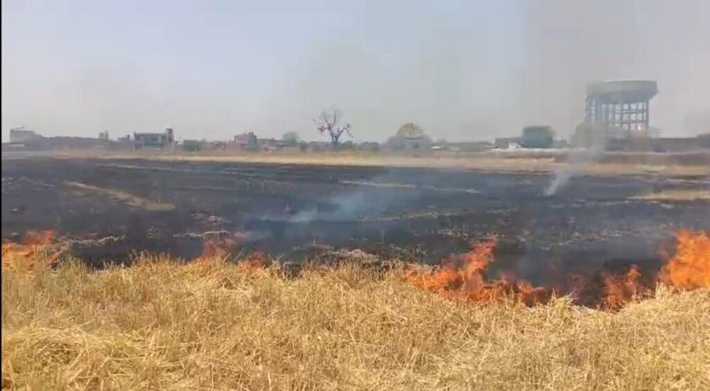 Jalaun news today ।जालौन नगर में छत्रसाल स्कूल के पास स्थित खेत की पराली में आग लगी। हालांकि समय रहते दमकल ने आग पर काबू पा लिया। जिससे बड़ा हादसा टला।