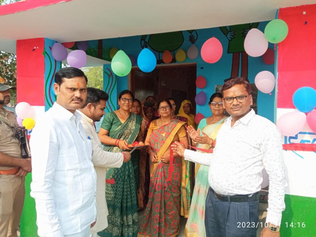 औरैया जनपद में ब्लाक प्रमुख ने फीता काटकर किया आंगनबाड़ी केंद्र का उद्घाटन