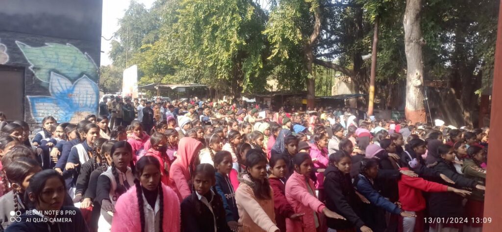 Jalaun news today । आगामी लोकसभा चुनाव में मतदान शत प्रतिशत मतदान कराने के उद्देश्य से सरकार द्वारा स्वीप कार्यक्रम को चलाया जा रहा है। इसी कड़ी में शनिवार को मतदान शत प्रतिशत हो सके इसको लेकर जालौन नगर के छत्रसाल इंटर कॉलेज के ग्राउंड में मानव श्रंखला का निर्माण कराते हुए छात्रों ने छत्रसाल ग्राउंड से लेकर तहसील तक चलकर लोगों को अधिक से अधिक संख्या में मतदान करने के लिए जागरूक किया गया। और यह छात्रों द्वारा बनाई गई मानव श्रंखला तहसील परिसर में आकर समाप्त हुई जहाँ पर सभी को मतदाता जागरूकता की शपथ दिलाई गई।
