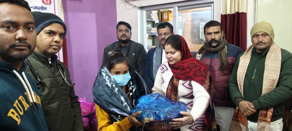 Jalaun news today । जालौन सामुदायिक स्वास्थ्य केंद्र में राष्ट्रीय क्षय रोग उन्मूलन कार्यक्रम के अंतर्गत टीबी मरीजों को पोषण कंबल वितरण कार्यक्रम का आयोजन किया गया। कार्यक्रम के दौरान पालिकाध्यक्ष नेहा पुनीत मित्तल ने गोद लिए 10 टीबी मरीजों को पुष्टाहार सामग्री और कंबल वितरित किए।