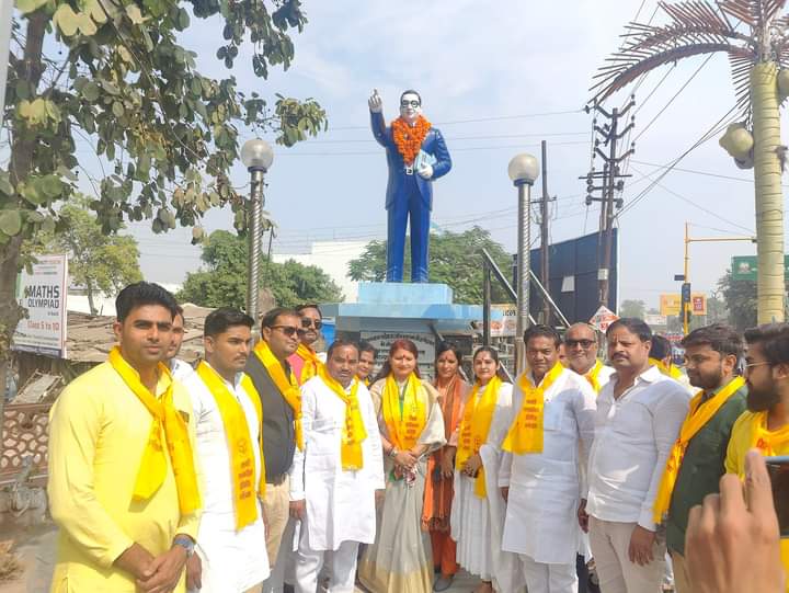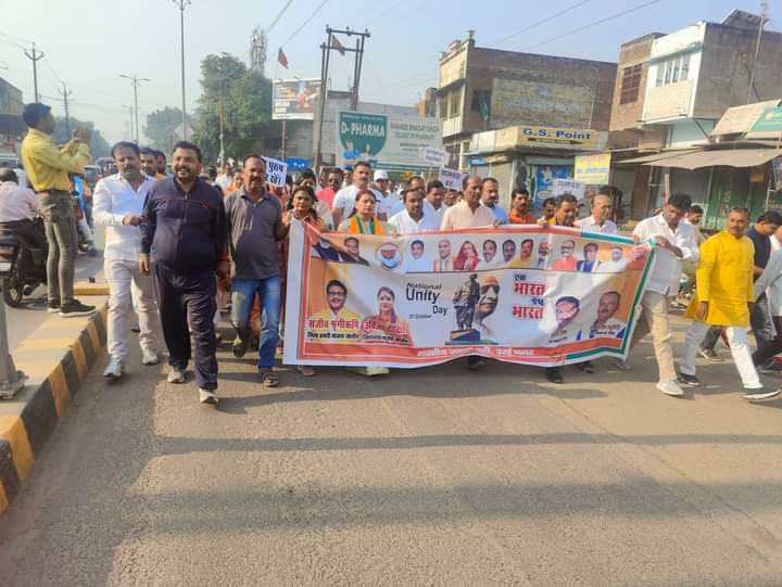 भाजपा ने पैदल मार्च निकाल पटेल प्रतिमा पर किया माल्यार्पण