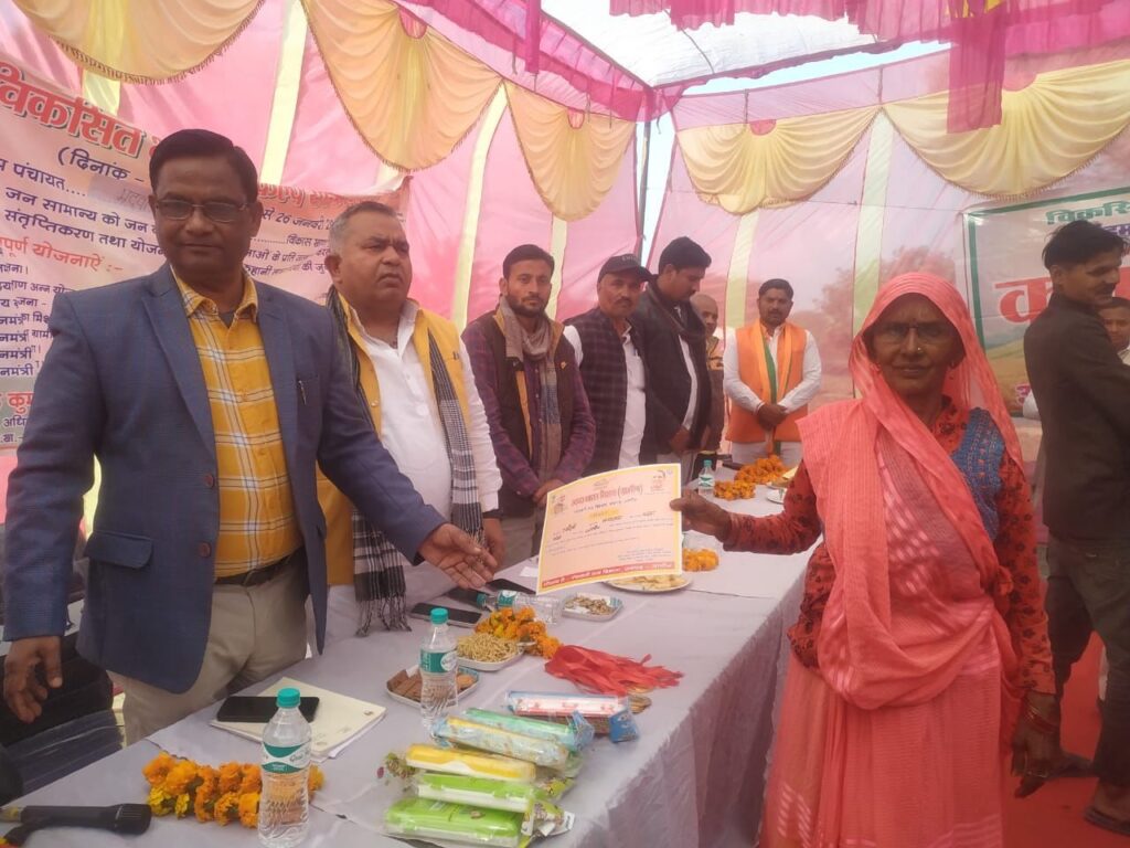 विकासखंड की ग्राम पंचायत भदवां व जीपुरा में विकसित भारत संकल्प यात्रा के तहत जन चौपाल का आयोजन किया गया। मुख्य अतिथि ब्लॉक प्रमुख रामराजा निरंजन ने कहा कि प्रधानमंत्री नरेंद्र मोदी के नेतृत्व में देश लगातार तरक्की कर रहा है। शीघ्र ही हम विकसित राष्ट्र होंगे। पूर्व में जहां योजनाओं का लाभ पात्र व्यक्तियों को नहीं मिल पाता था। अब सभी पात्र व्यक्ति योजनाओं का लाभ ले रहे हैं। मोदी की गारंटी वाली एलईडी वैन के माध्यम से ग्रामीणों को केंद्र व प्रदेश सरकार द्वारा चलाई जा रही विभिन्न जनहितकारी योजनाओं की जानकारी दी गई। उन्होंने ग्रामीणों की समस्याओं को सुना और उनके निस्तारण का आश्वासन दिया। कार्यक्रम संयोजक बीएस कनौजिया ने अतिथियों व ग्रामीणों को शपथ दिलाई कि सभी मिलकर 2042 तक भारत को विकसित राष्ट्र बनाएंगे। इस दौरान किसान सम्मान, निधि, उज्ज्वला योजना, आयुष्मान कार्ड के माध्यम से मुफ्त इलाज, प्रधानमंत्री व मुख्यमंत्री आवास योजना आदि के संबंध में जानकारी दी गई और पात्र व्यक्तियों को इन योजनाओं का लाभ लेने के लिए प्रेरित किया गया। इस मौके पर प्रधान जगत नारायण, प्रदीप गुर्जर, अजीत सिंह, संजय सिंह तोमर, अनूप सेंगर, संदीप विश्वकर्मा, अखिलेश रजक, नरेंद्र पाल सिंह, सुमन द्विवेदी आदि मौजूद रहे।