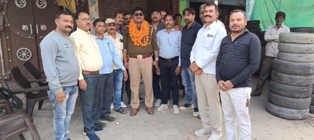 Jalaun news today । जालौन कोतवाली में तैनात एसएसआई आनंद सिंह के स्थानांतरण पर पत्रकारों ने फूल मालाएं पहनाकर उन्हें विदाई दी।